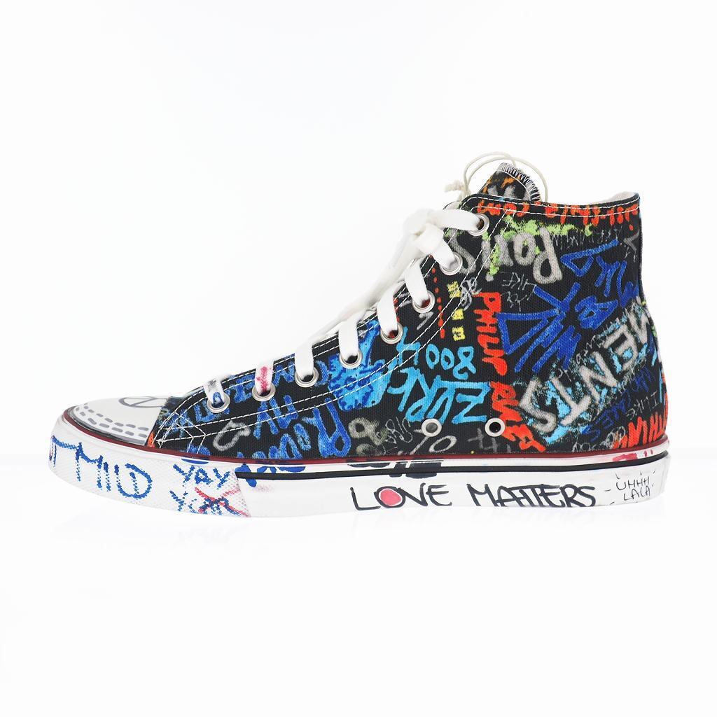 ■商品 ヴェトモン ベトモン VETEMENTS Black Graffiti グラフィティ ハイカット スニーカー 黒 43 ■状態 ・店頭未使用品です。 ■色:ブラック ■素材:キャンバス ■サイズ:43 最大幅 10.5 cm アウトソール 31 cm