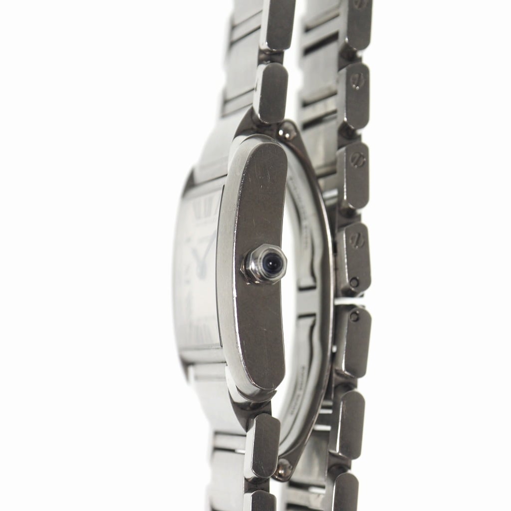 商品 タンクフランセーズSM W51008Q3 腕時計 白文字盤 クォーツ シルバー 140-202008080544 ■状態 ブレス金属部分、ケース部分に細かな小傷はございますが、その他に目立った汚れやダメージはなく、まだまだ愛用していただけるお品です。 ■色:文字盤:ホワイト ブレス:シルバー ■サイズ バンド幅:1.4cm 腕回り:16.5cm ケース.タテ25mm ケース.ヨコ20mm