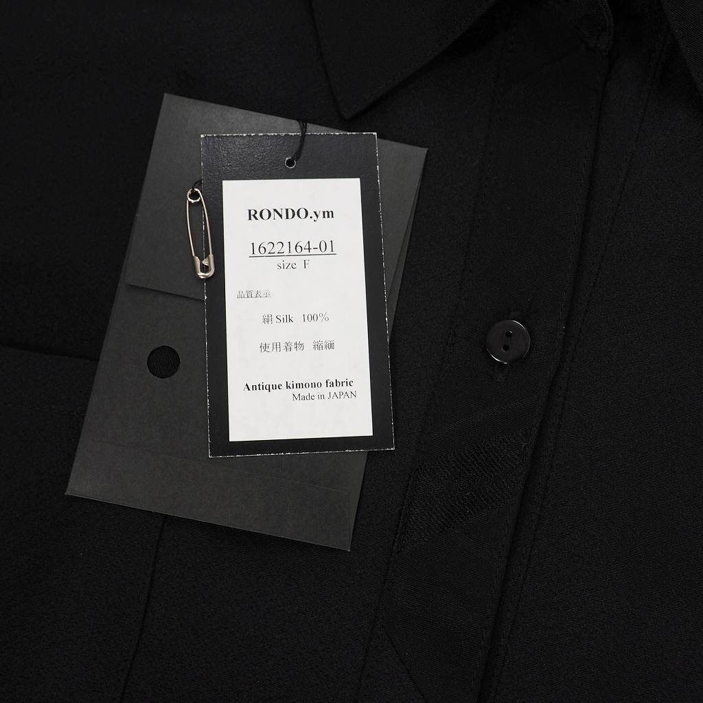 商品 ロンド RONDO.ym 五分袖 家紋 ロングシャツ ワンピース 着物再構築 F ブラック 黒 1622164-01 140-202009010958 ■状態 使用感が少なく状態の良い商品です。 ■色:ブラック ※照明や撮影環境により、実物と若干お色が違う場合がございます。予めご了承下さい。 ■素材 シルク100% 使用着物 縮緬 ■サイズ:F 肩幅:47cm 身幅:56cm 着丈:121cm 袖丈:35cm