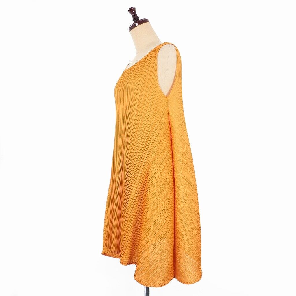 イッセイミヤケ ISSEY MIYAKE ノースリーブ ワンピース チュニック プリーツ 3 オレンジ PP41-JT804