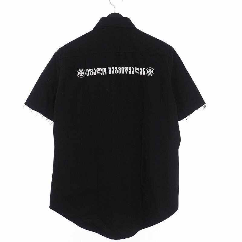 商品 19SS バック刺繍 デニムシャツ 半袖 カットオフ XS ブラック 黒 USS196060 140-202009170896 ■状態 使用感少なく、全体的に綺麗な状態です。 ■色 ブラック ※照明や撮影環境により、実物と若干お色が違う場合がございます。予めご了承下さい。 ■素材 コットン100% ■サイズXS 肩幅:46cm 身幅:59cm 着丈:80cm 袖丈:25.5cm